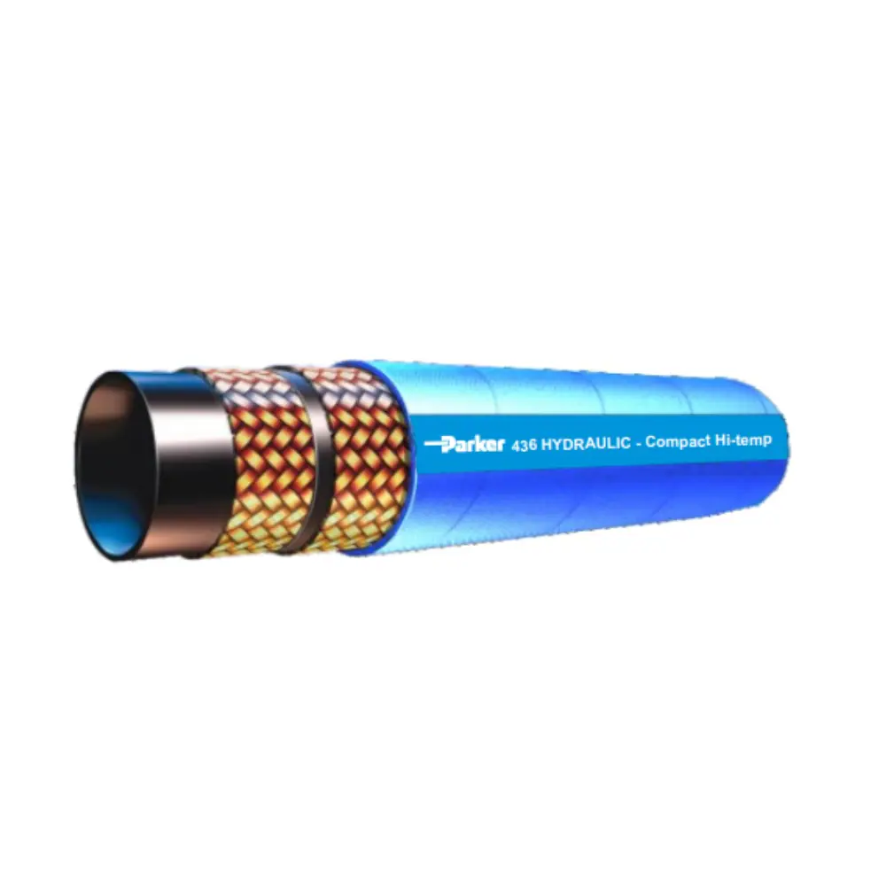 Parker's 436 hose is a hydraulic industry standard hose that has a pressure range of 2000-4000 PSI and has the flexibility to work in tight routing requirements.