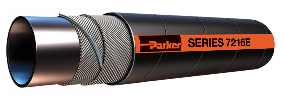 Parker's 213 hose is a transportation hose that has a pressure range of 175-2000 PSI and is reinforced with one fiber braid and one steel braid making it excellent for rugged transportation applications.