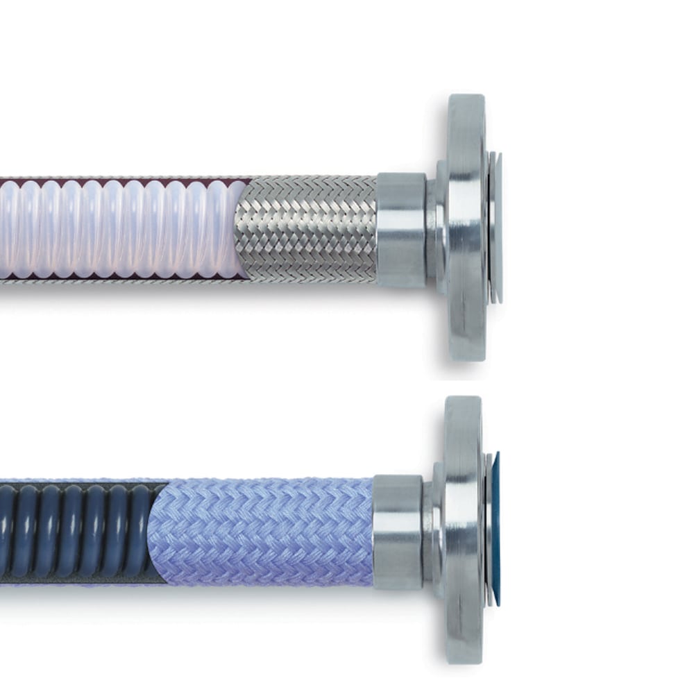 Flare-Seal® assemblies increase flow by providing smooth, clean connections and preventing bacterial entrapment. They are available with a stainless steel braid, polypropylene braid or other optional braids for fluid handling and paint applications.