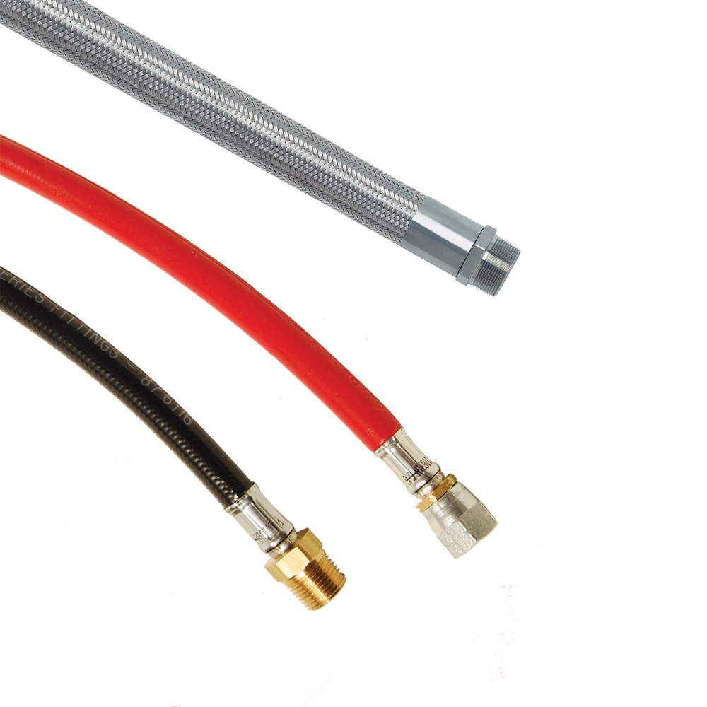 Flex-Ever Barrier Gasoline Dispenser Hose Factory Assemblies are designed for eco-friendly, low vapor permeation during the transfer of refined fuels from powered dispensers to 180°F and 150 psi, Series 7282