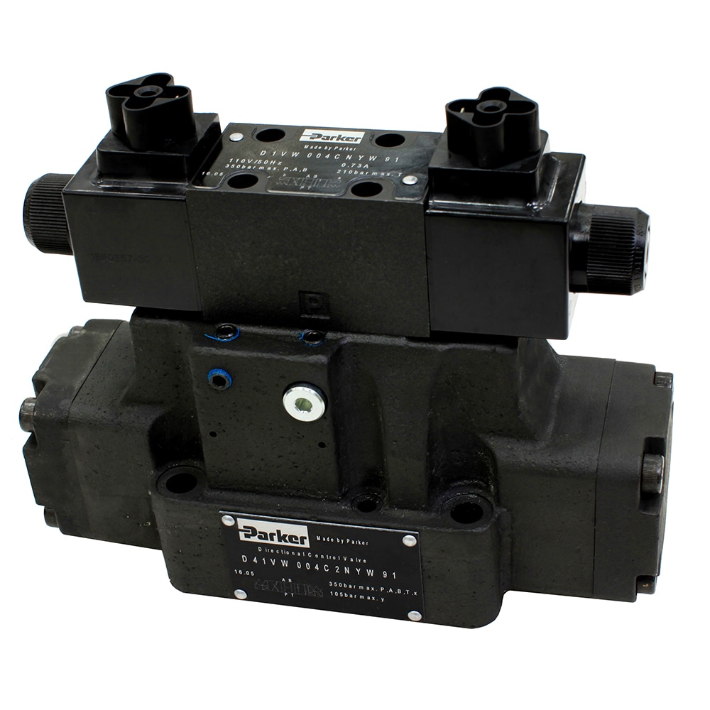 Parker’s D81VW directional control valves are 5-chamber, pilot operated, solenoid controlled valves.