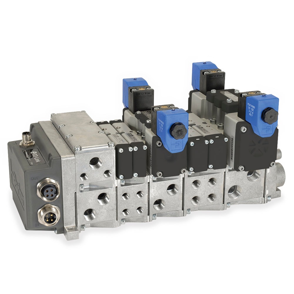 The P2M IO-Link Node allows for simple, cost efficient connection to any IO-Link master. It can connect to any Safe Power Supply and connect IO-Link to three of our valve products: Moduflex, H Micro and all 5 sizes of H ISO valves (15407 & 5599)