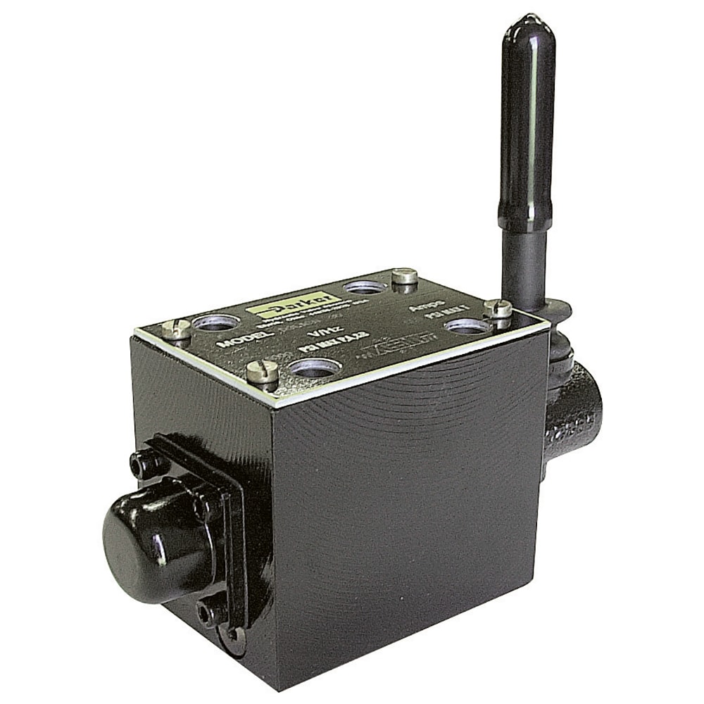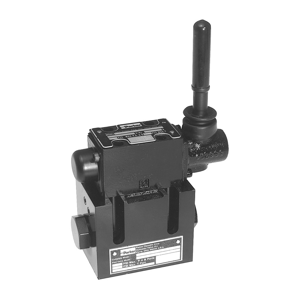 Parker’s manually operated 4-way, 2 or 3-position directional control spool valve is capable of flows up to 7.5 lpm (2 gpm) and pressures as high as 240 bar (3500 psi). Knob and lever actuators are available with detents.