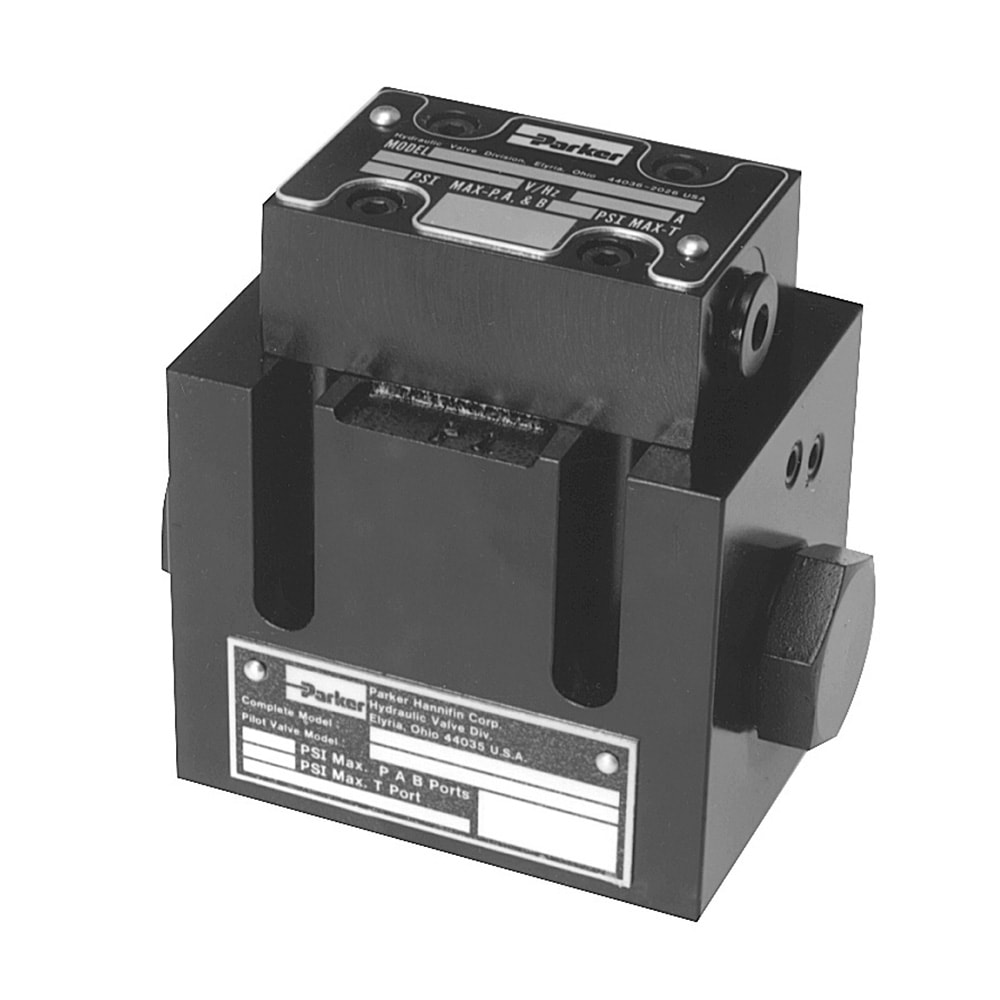Parker’s D31 directional control valves are 5-chamber, pilot operated, solenoid controlled valves.
