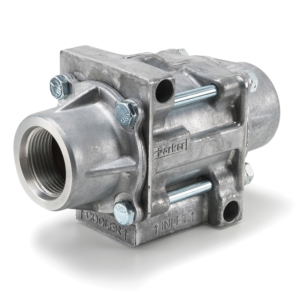 Parker's thermal bypass valves modulate fluid temperature by shifting return line flow through the cooler, or bypassing it directly to the reservoir.
