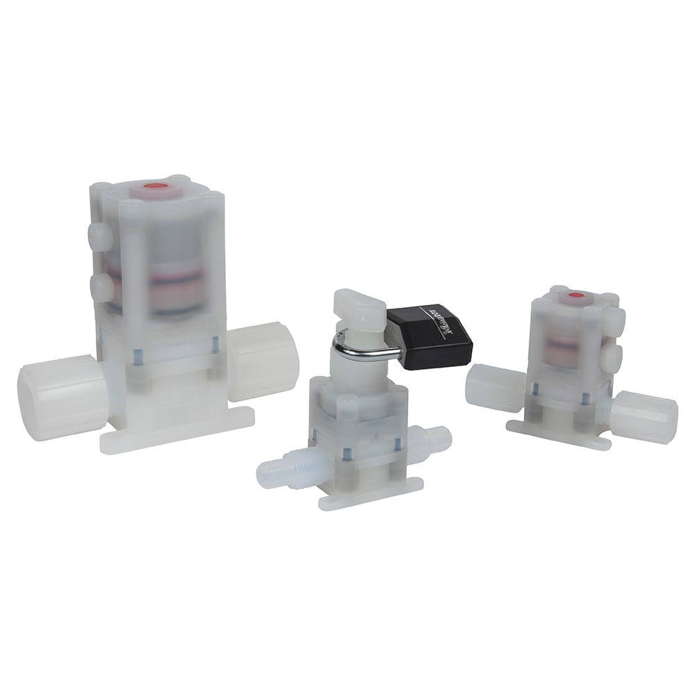 The PV-12 Series PFA Diaphragm Valve offers high leak integrity and exceptional corrosion resistance. It is ideally suited for use in ultra-high purity (UHP) and aggressive fluid applications. Available in 2-way and 3-way configurations.