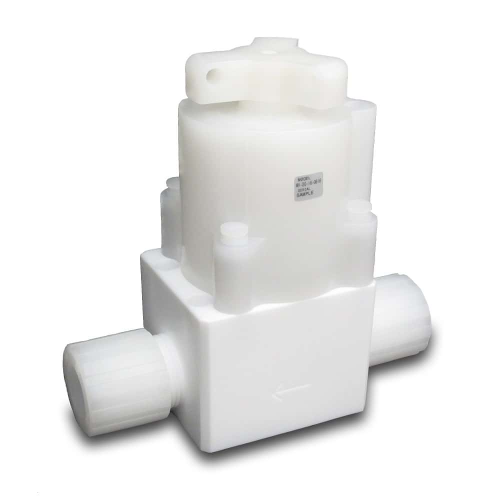 The MV-20 Series PTFE Slurry Valve offers exceptional sealing of aggressive chemicals and abrasive slurry media. The valve minimizes particle generation and is designed for use in semiconductor manufacturing and clean-area applications.