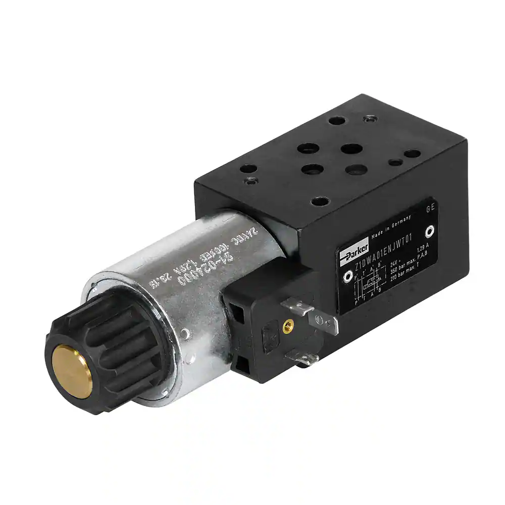 Direct operated spool-type sandwich DC valves series Z1DW size NG06 are used for shutting off the flow in stack systems.