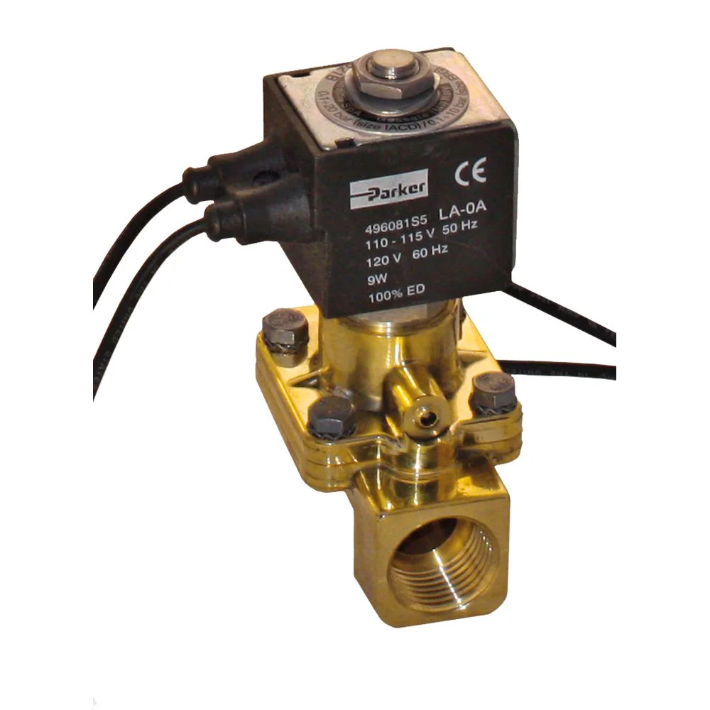 Parker 2-Way Normally Open, 1" NPT Solenoid Valves provide operating pressures of 125 PSI and flow factors of 13 CV's. They offer a brass body, multiple mounting positions and coil options for all general purpose flow control applications.