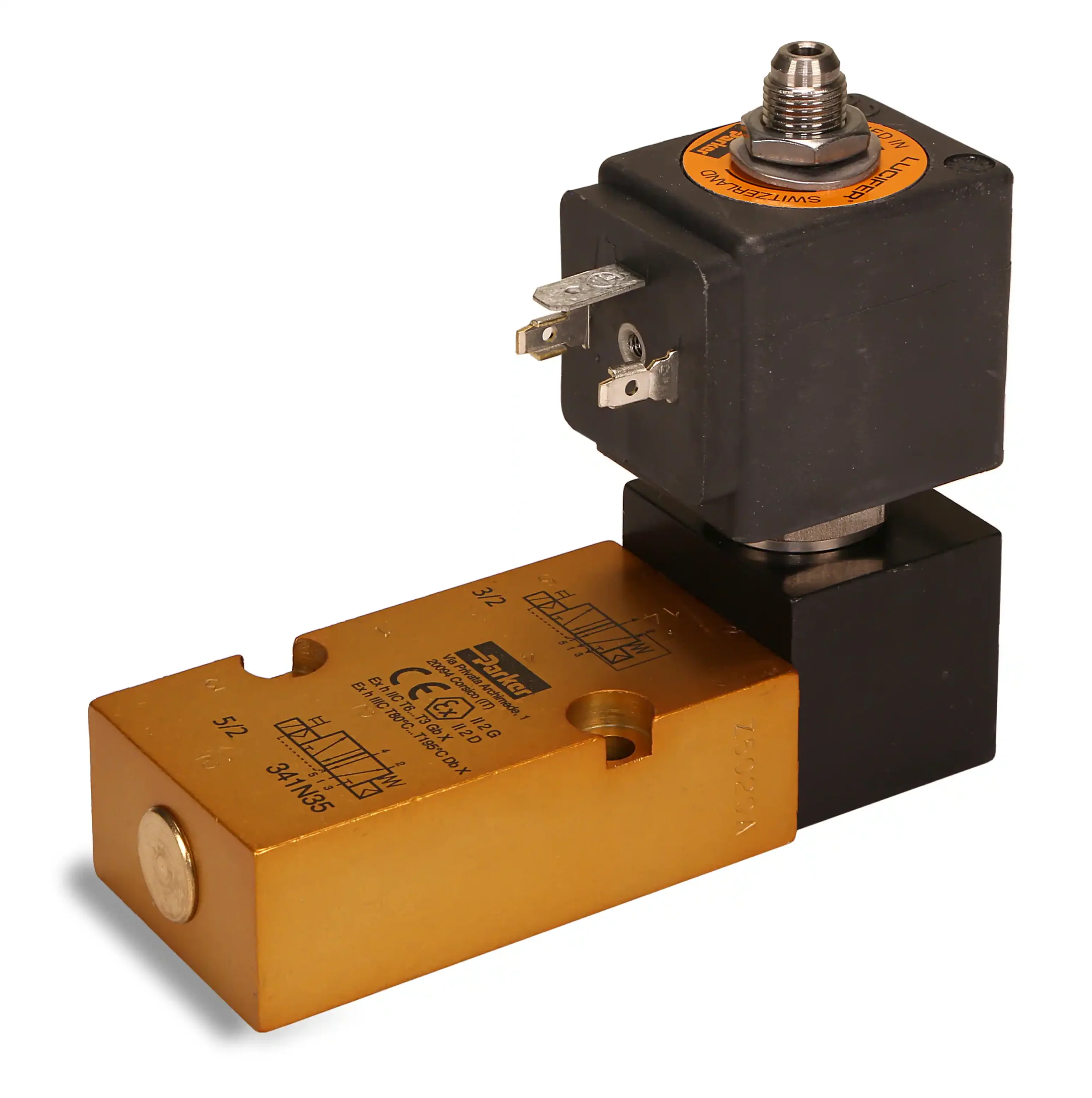 Parker 3-Way Normally Closed, 3/8" NPT Solenoid Valves provide operating pressures of 180 psi and flow factors of 2.1 CV's. They offer a brass body, multiple mounting positions and coil options for all general purpose flow control applications.