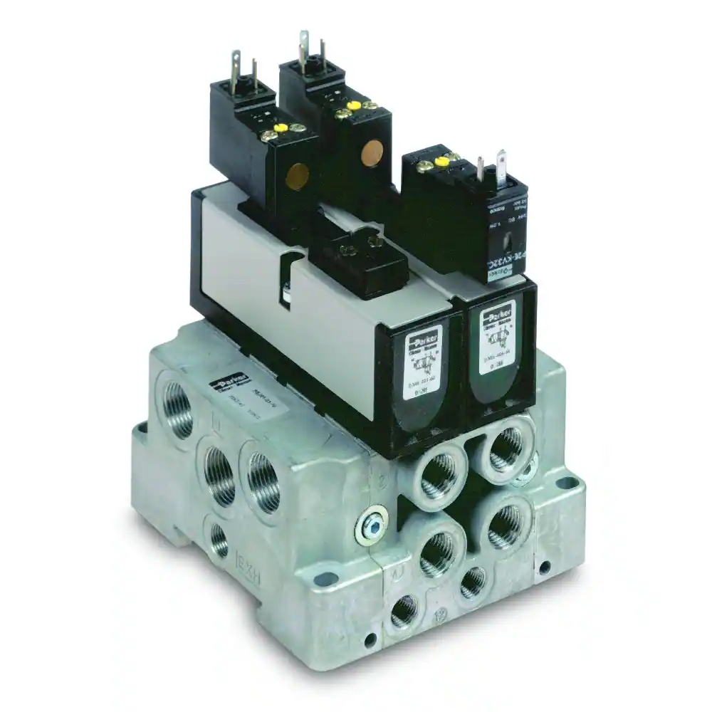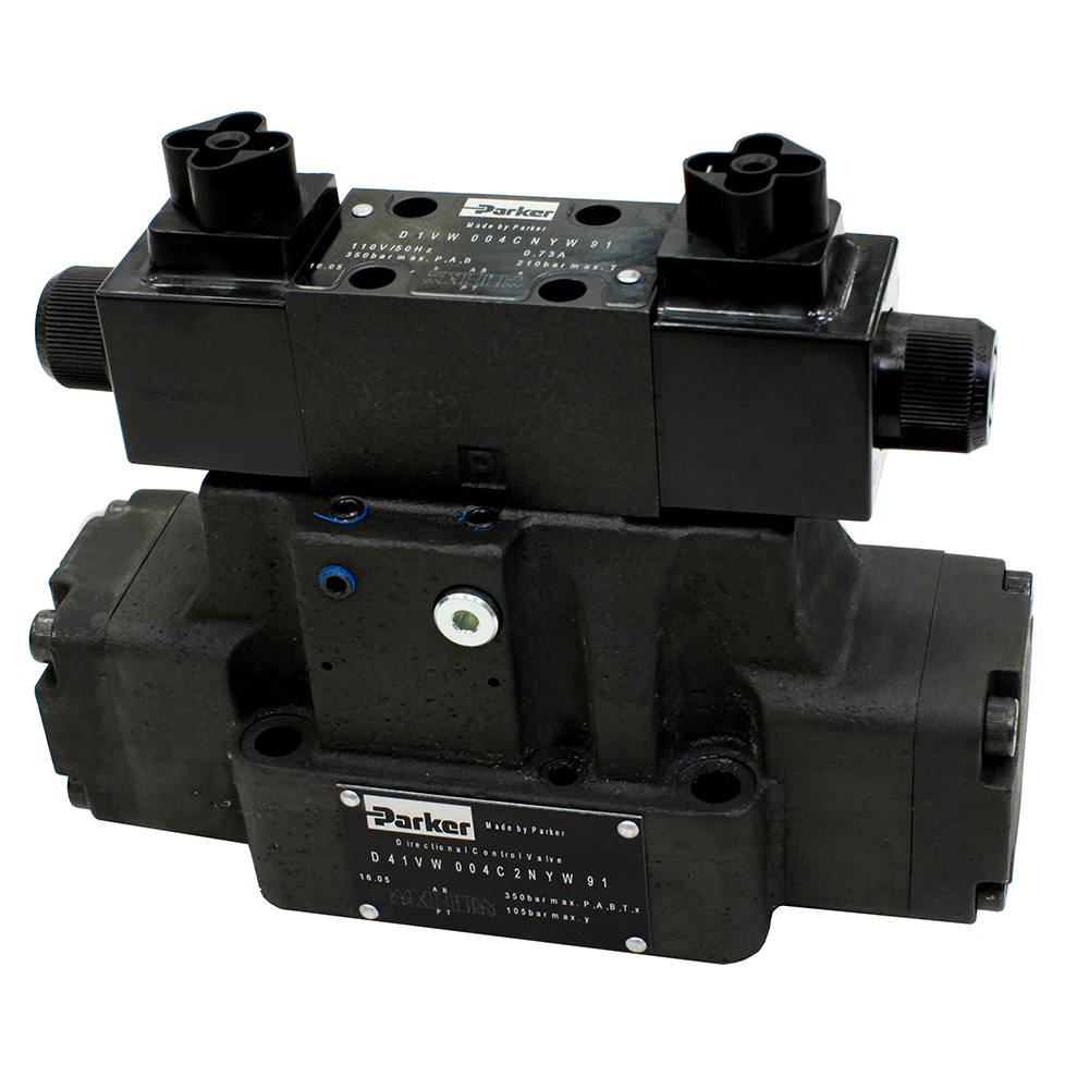 Parker’s D101V directional control valves are 5-chamber, pilot operated, solenoid controlled valves.