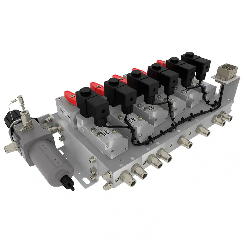 Configurable pneumatic modular Ancillary system for Railways application. The modular system approach utilizes a series of standard “building” or “function” modules. Each module provides individual isolation of its control circuit.