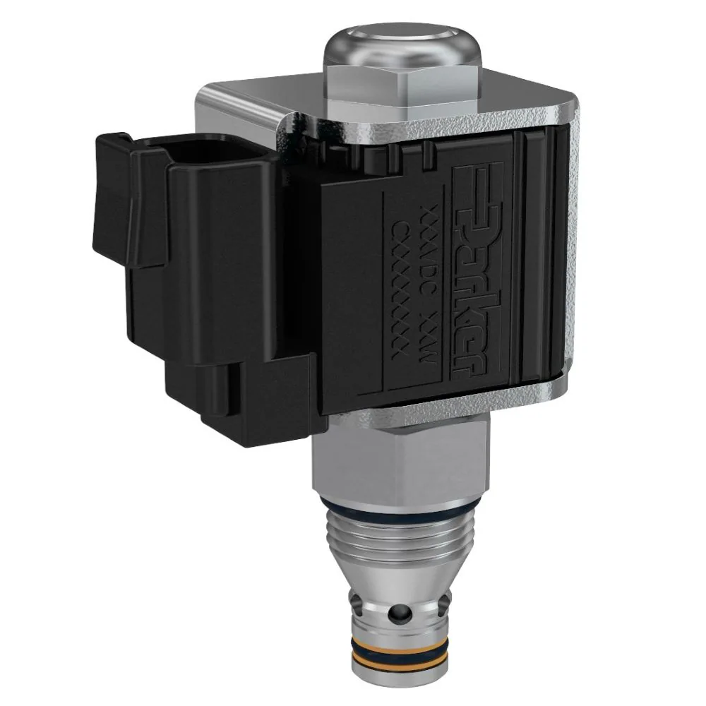 Parker's 2-way poppet solenoid valves check flow in one direction with very low leakage and free flow opposite; normally-open or normally-closed configurations available. Capable of pressures up to 350 bar (5000 psi) and flows up to 260 lpm (70 gpm).