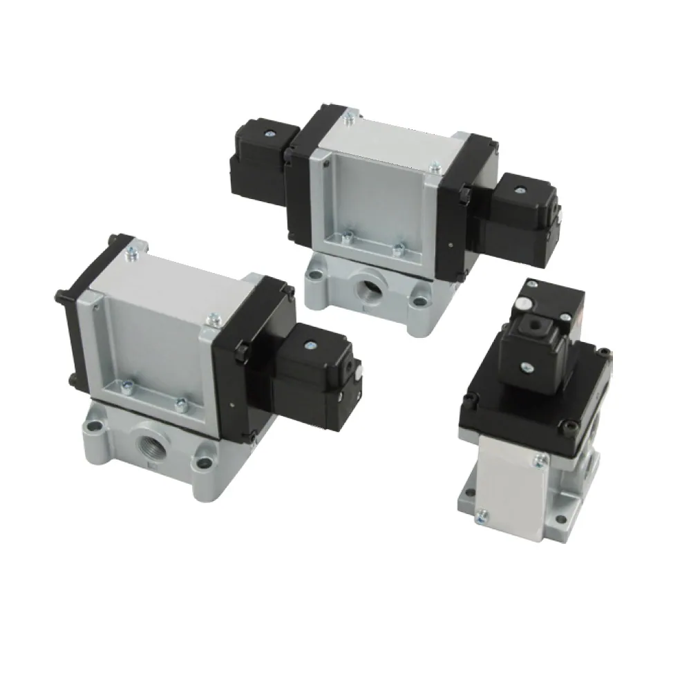3 or 4-port, 3-position direct-acting solenoid valve, VA01_33&34, for vacuum and vacuum break. This valve is most suitable for high speed pick and place application. One valve can operate both vacuum and vacuum break controls.