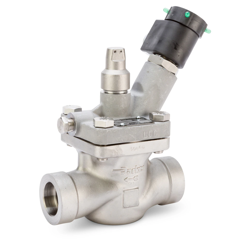 This compact, heavy duty, pilot operated, ductile iron bodied solenoid valve is suitable for Ammonia, and other refrigerants, certain oils and other fluids approved for use in refrigeration.