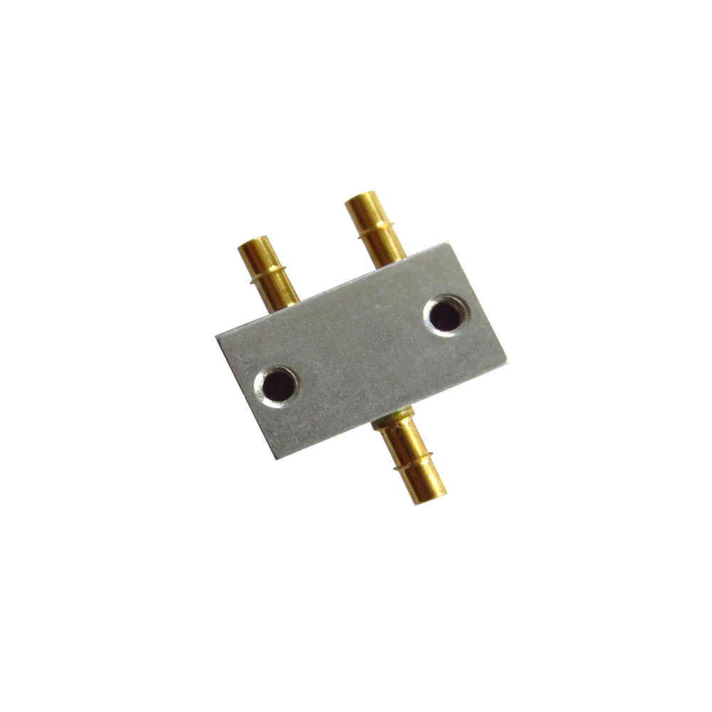 Parker’s SRS Series single station aluminum manifold has .078” barbs installed for connection to 5/64” ID tubing. The FKM Gasket (195-000139-001) and 2 mounting screws (191-000100-009) are required and sold separately.