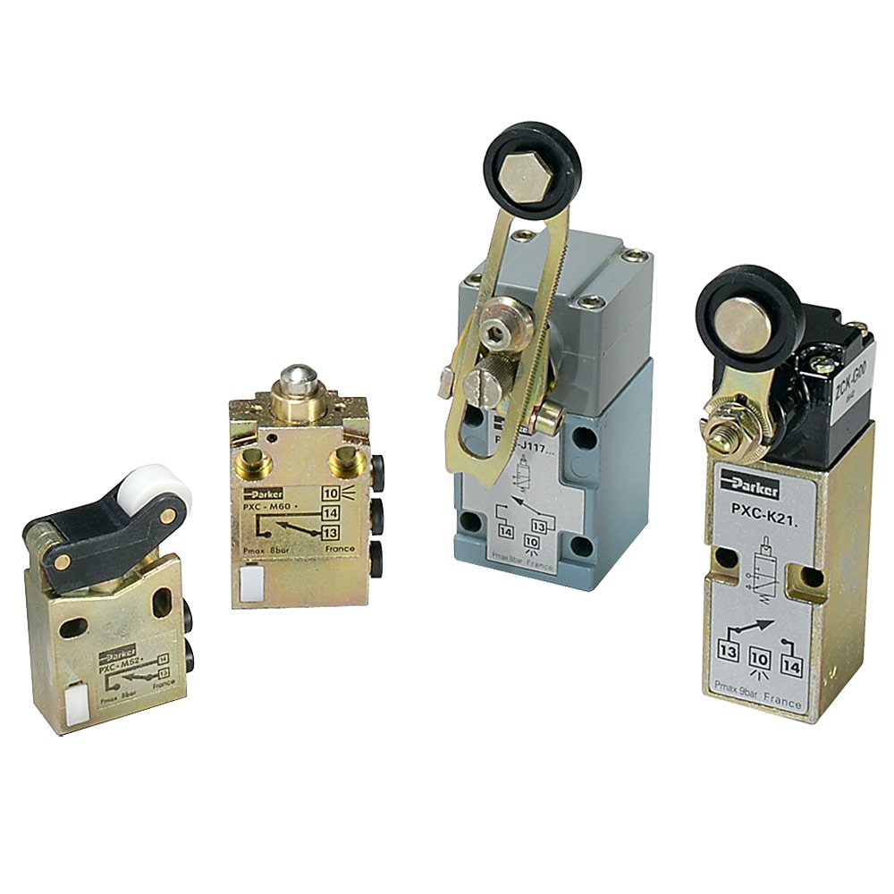 Pneumatic Limit Switches are compact manual mechanical 3 way valves. Mechanical operators include both metal and plastic rollers and plungers, as well as whisker valves. Valves are either normally closed or normally open.