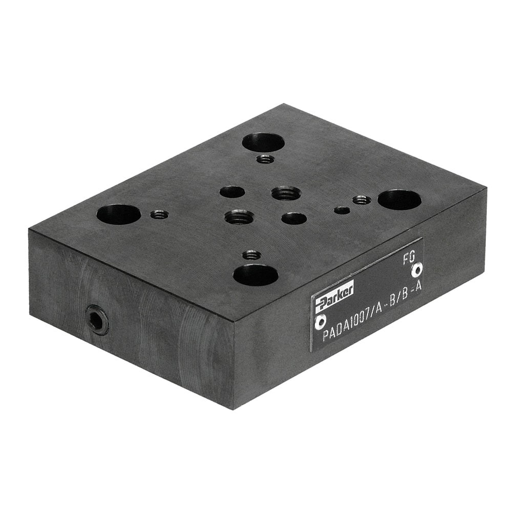 The solid subplate series A102 in size NG10 is used for mounting the proven Parker pressure valves series VB and VM.
