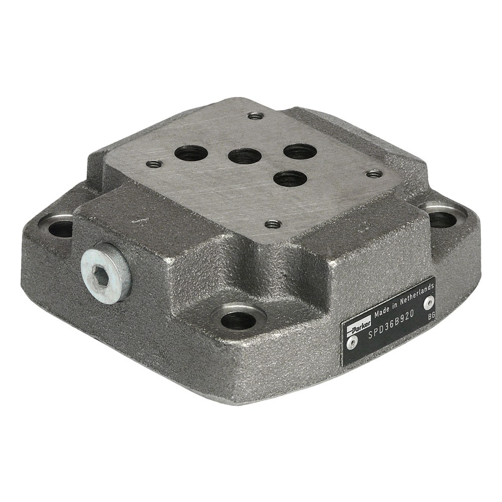 Subplates series SPD are used for directional control valves with BSPP threads. They are available in different versions from size NG06/CETOP 03 to NG25/CETOP 08