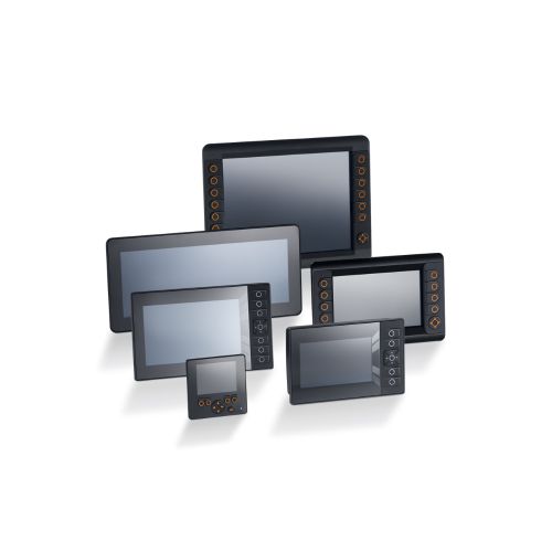 The displays feature many freely programmable backlit function keys. Some types are equipped with an additional navigation key, a potentiometer with pushbutton function or a touch screen.