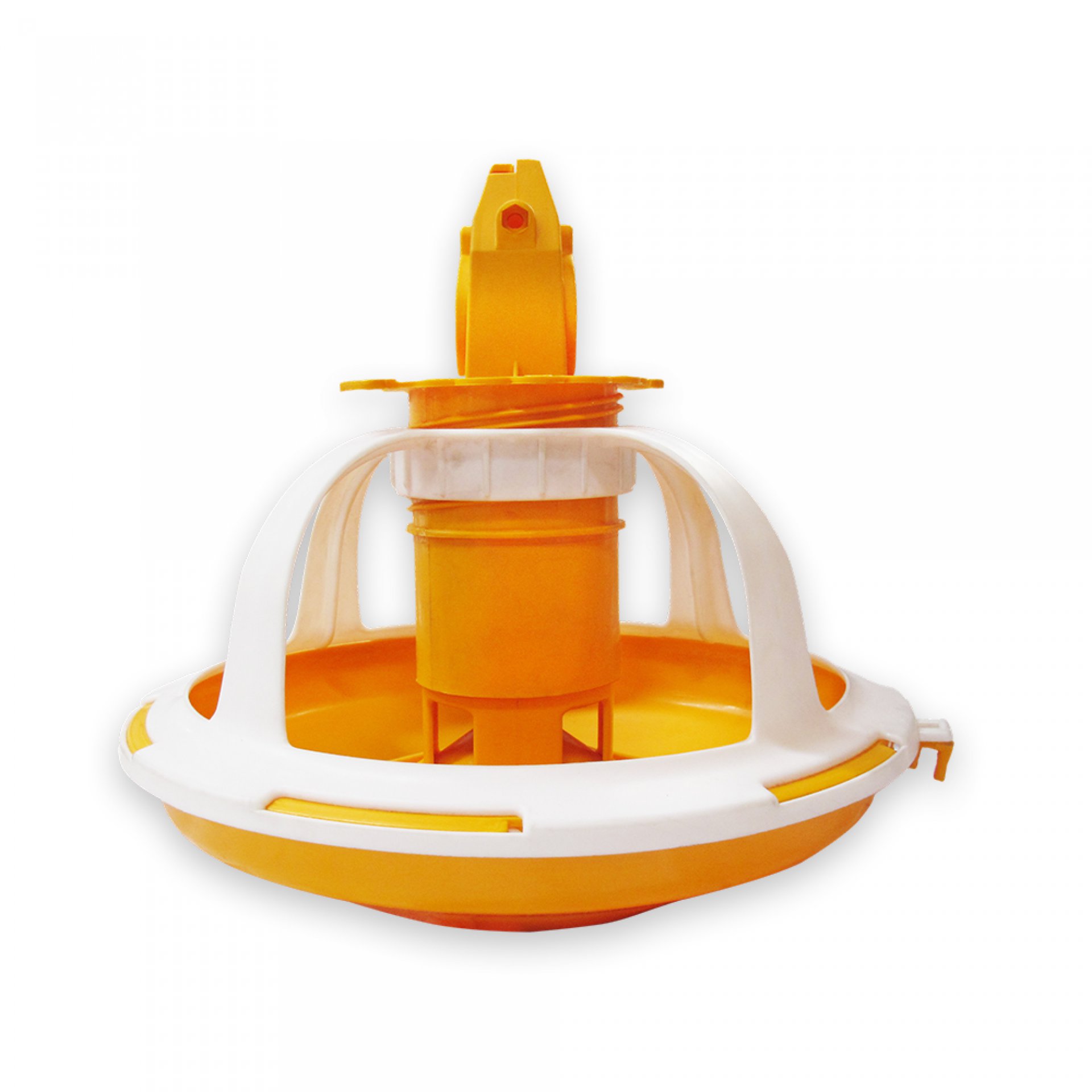 All pieces and bodies are made of high quality plasticmaterial and there are no sharp sides and corners which harm animals. Feedersare designed for achieving optimum growing rates, ease of access to the feed,ease of mounting and demounting and minimum feed waste. As the food becomeslass in the pan food goes down to the feeder pan automatically from the foodtank. 1 feeder pan is used for 65-70 chiks.
