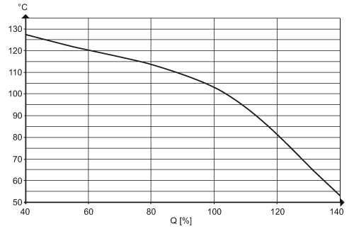 | Analogue current output [mA] | 4…20; (water: Q [l/min] = 9,375 x (I – 4 mA); water-glycol: Q [l/min] = 9,375 x (I – 4 mA) – Qo see Figure 2) |